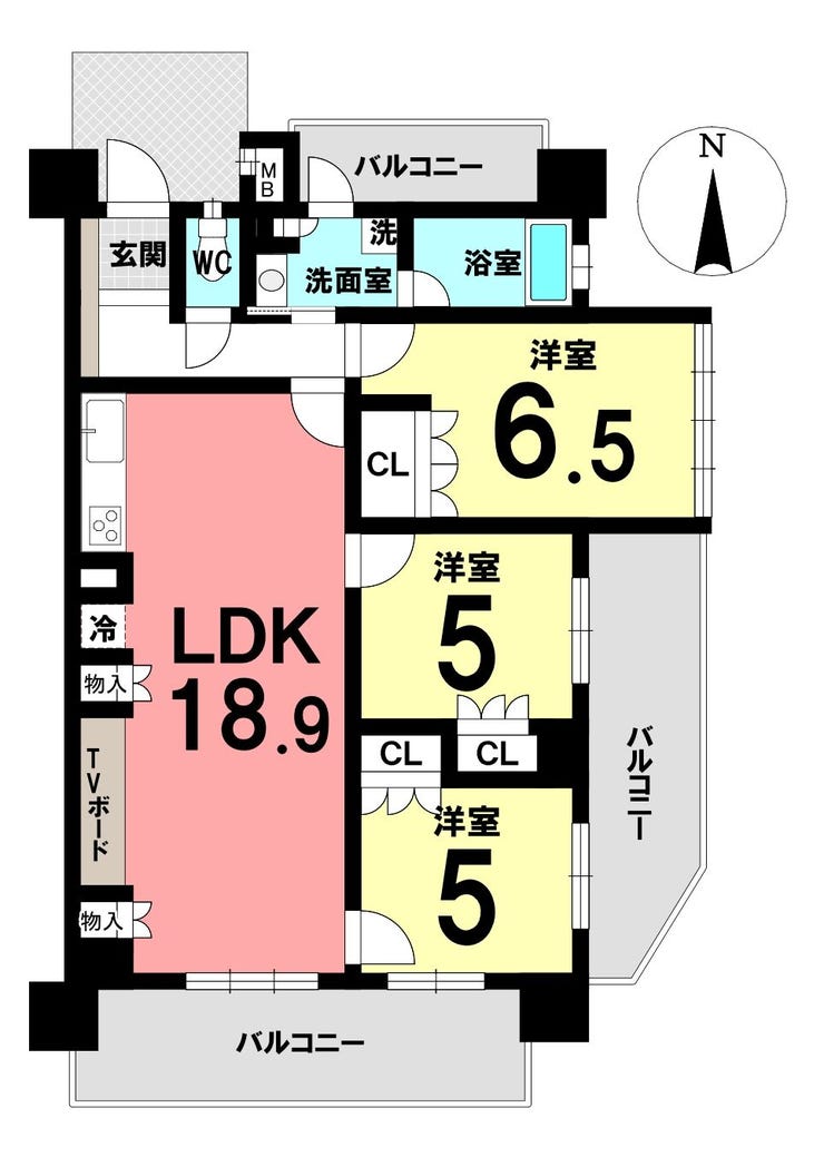 | 主要採光 | 南向 | バルコニー | 南向22.65㎡ |